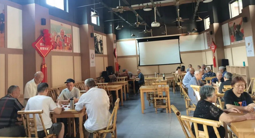 阳光轻洒在雁江区向阳社区。吉祥苑小区门前的老黄桷树下,两位银发老人戴着老花镜,专注地纳着鞋底。不远处的向阳老茶馆里,传来阵阵欢笑声——这里曾是临江粮站的仓库,如今成了老人们的“幸福驿站”。73岁的王大爷正和朋友下着象棋,头顶风扇轻转,送来阵阵凉意。“这儿不仅能下棋、看电影、听讲座,中午还能在社区食堂吃上热乎的饭菜!”他满脸笑意。同一时间,一墙之隔的活动室里,扬琴、二胡、笛子的乐声交织成一首《幸福年》。79岁的向阳民乐队负责人宋道清感慨:“社区提供场地,让我们老有所乐,生活更有意义!”