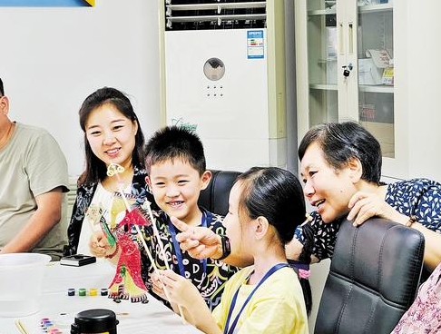 两位小朋友在桥西区公益课堂的“非遗手工皮影”课上尝试皮影操作。 石家庄市桥西区委宣传部供图