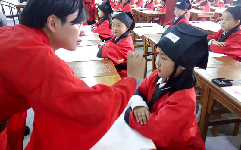 青少年儿童走进应天书院诵读经典。商丘市文明办供图