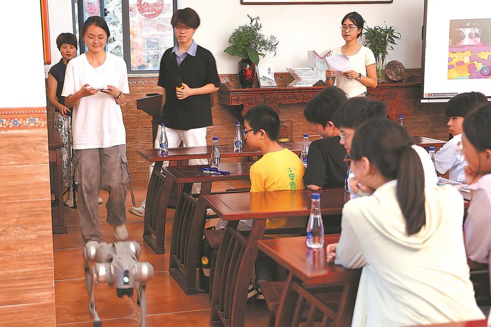 “今年,我们引入了‘像素复旦’和机器人课程,希望科技元素能拓宽孩子们的视野。”本次支教团队的领队,复旦大学中文系的许芮硕介绍,安溪以铁观音闻名,拥有得天独厚的生态环境,夏令营围绕安溪特色设计了“生态+AI”主题课程,探讨生态保护与科技发展的关系。